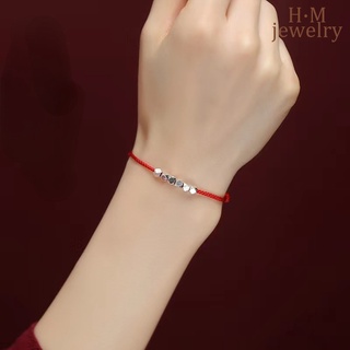 Vòng Tay Dây Đỏ May Mắn Đính Hạt Bạc 925 Dễ Thương Cho Cặp Đôi