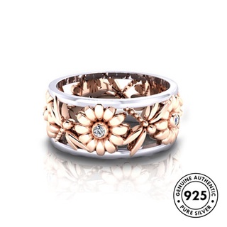 Nhẫn Mạ Vàng Hồng 18K Hình Hoa Hướng Dương Sáng Tạo S925
