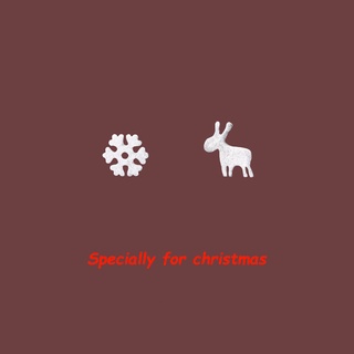 Bông tai bạc S925 hình bông tuyết Elk đơn giản chống dị ứng cho học sinh