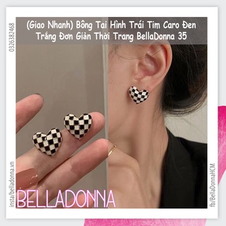 (Giao Nhanh) Bông Tai Hình Trái Tim Caro Đen Trắng Đơn Giản Thời Trang BellaDonna 35