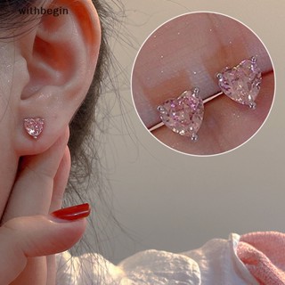 1 / 2 Đôi Bông Tai Xỏ Lỗ Hình Trái Tim / Giọt Nước Đính Đá Zircon Màu Hồng Lấp Lánh