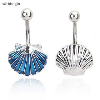 Khuyên Rốn Bằng Thép Titan Đính Pha Lê Hình Vỏ Sò Màu Xanh Dương Sáng Tạo Cho Nữ