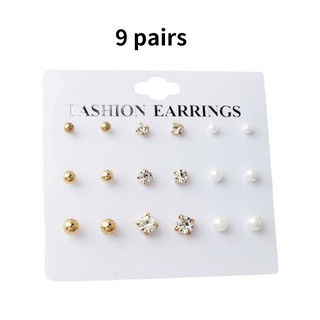 Bộ 9 Đôi Bông Tai Đính Đá / Ngọc Trai Giả Xinh Xắn