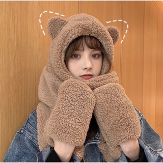 Mũ Lông Cừu 3in1 Tai Gấu, Mũ Kèm Khăn Quàng Cổ Và Sỏ Tay Kiểu Dáng Hàng Quốc Mẫu Mới