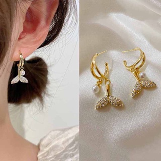 Bông Tai Đuôi Cá Đính Ngọc Trai Phong Cách Retro Hàn Quốc Độc Đáo