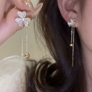 Bông Tai Hình Cỏ Ba Lá Đính Đá Đơn Giản Có Thể Điều Chỉnh Kích Thước Phong Cách Nhật Hàn