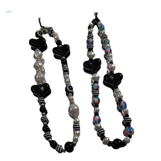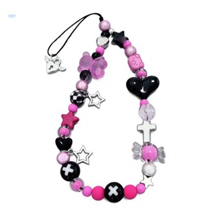 Dây Đeo Điện Thoại Y2K Kết Hạt Tròn Hình Trái Tim Màu Đen Làm Móc Khóa Phong Cách Halloween Cho Nữ