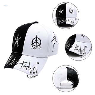 Mũ Lưỡi Trai Màu Trắng Đen In Họa Tiết Graffiti Với 3 Vòng Kim Loại Có Thể Điều Chỉnh Cho Nam Và Nữ