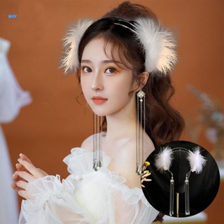 Băng Đô Cài Tóc Đính Lông Vũ Màu Trắng