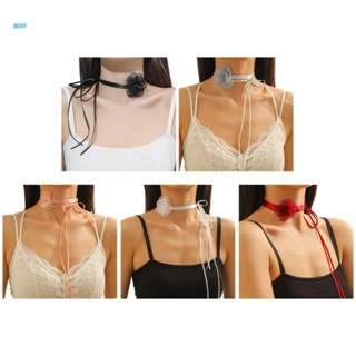 Nerv Vòng Cổ Choker Kết Hợp Mặt Hoa Hồng Thanh Lịch Có Thể Điều Chỉnh Cho Nữ Y2K