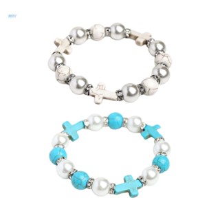 Vòng Tay Chuỗi Hạt Đá Tự Nhiên Co Giãn Mặt Thánh Giá Cho Nam Và Nữ