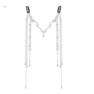 Băng Đô Cài Tóc Đính Pha Lê Hình Giọt Nước Phối Tua Rua Dài Phong Cách Trung Hoa Cổ Điển Cho Nữ