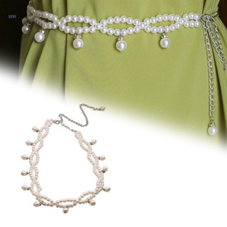 Thắt Lưng Dây Mỏng Đính Ngọc Trai Màu Trắng Bằng Kim Loại Thời Trang Mùa Hè Cho Nữ
