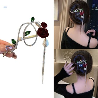 Kẹp Tóc Hoa Hồng Đính Đá Lấp Lánh Chống Trượt Cho Cô Dâu