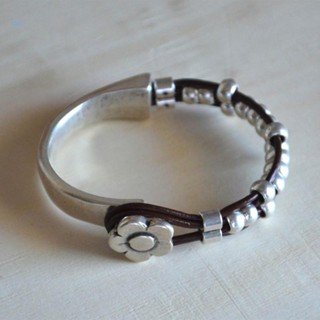Vòng Tay Da Hai Lớp Mặt Hình Hoa Cúc Phong Cách Hip Hop Thời Trang Cho Nữ