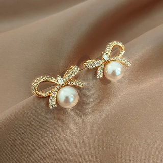 Bông tai hình nơ đính ngọc trai nhân tạo phong cách đơn giản hợp thời trang