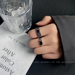 Set Nhẫn Khảm Đá Đen Phong Cách Gothic Thời Trang Có Thể Điều Chỉnh Cho Cặp Đôi