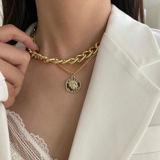 Vòng Cổ Kim Loại Hai lớp Phong Cách Hip Hop Thời Trang Nữ