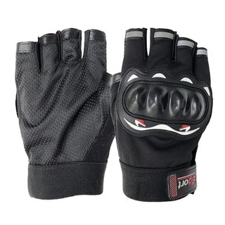 Găng tay cắt ngón thể thao nam có miếng đệm bảo vệ, phù hợp chạy xe máy, xe đạp thể thao - Đen -GT02