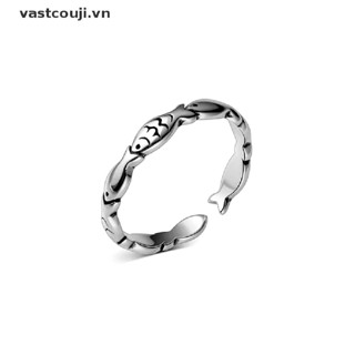 Nhẫn Hở Mạ Bạc Khắc Hình Cá Kiểu Vintage Sáng Tạo Có Thể Điều Chỉnh Kích Thước