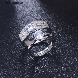 1 Cặp Nhẫn Đính Hôn Đính Đá Pha Lê Có Thể Điều Chỉnh Kích Thước