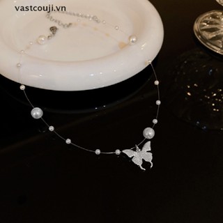 Vòng cổ Kim Loại Mặt Bướm Đính Ngọc Trai Thời Trang Cho Nữ