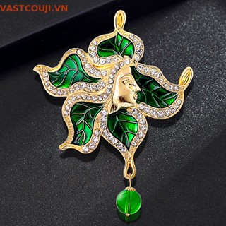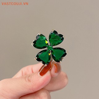 Ghim Cài Áo Hình Cỏ Bốn Lá May Mắn VASTJI Màu Ngọc Lục Bảo Kiểu Pháp Cổ Điển Cho Nữ