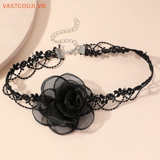 Vòng Cổ Choker Phối Ren Hoa Trà Đen Phong Cách Gothic Quyến Rũ Cho Nữ