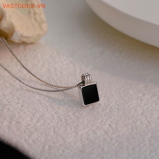 Vòng cổ Mạ Bạc Mặt Vuông Màu Đen Thời Trang Cho Nữ