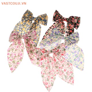 Kẹp Tóc Ruy Băng Thắt Nơ In Họa Tiết Hoa Xinh Xắn Cho Nữ