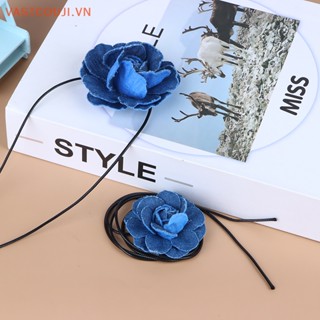 1 Vòng Cổ Choker Jean Nhiều Lớp Mặt Hoa Màu Xanh Dương Thời Trang Cho Nữ