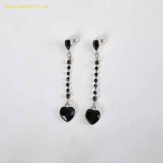 1 Đôi Bông Tai Hình Trái Tim Đính Đá Đen Phong Cách Hoàng Gia Cổ Điển