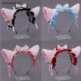 Băng Đô Tai Mèo Lông Xù Phối Ren Đính Chuông Hóa Trang Lolita