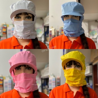 Nón kết trùm có khẩu trang vải silk mịn mát dùng trong ngành thực phẩm, thủy sản _ Hình chụp thật