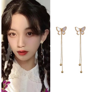 Khuyên Tai Bạc S925 Dáng Dài Tua Rua Mặt Hình Bướm Thời Trang Cho Nữ