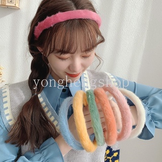 Băng Đô Cài Tóc Phủ Lông Mềm Mại Màu Kẹo Đơn Giản Thời Trang Dễ Thương Cho Nữ