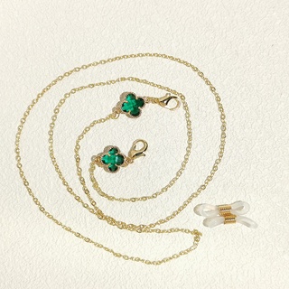 Dây Đeo Mắt Kính Gắn Đá Quý Cỏ Bốn Lá Màu Xanh Lá Thiết Kế Chính Hãng Đa Năng