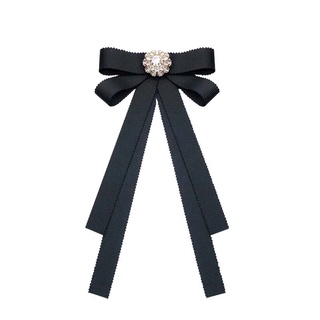 Nơ Cài Cổ Áo Đính Đá Pha Lê Và Ngọc Trai Màu Đen Phong Cách Hàn Quốc Cho Nữ