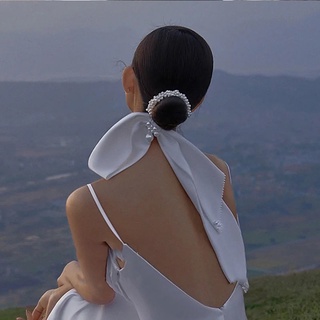 Dây Buộc Tóc Nơ Vải Satin Đính Ngọc Trai Phong Cách Retro Cho Cô Dâu