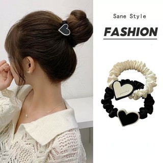 Dây Buộc Tóc Cao Su Co Giãn Hình Trái Tim Màu Đen Phong Cách Hàn Quốc