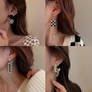 Bông Tai Họa Tiết Kim Cương Màu Trắng Đen Phong Cách Hàn Quốc Tinh Tế Thời Trang Cho Nữ