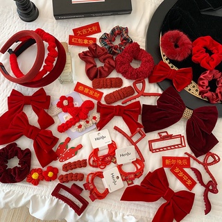 Kẹp Tóc Nơ Nhung Màu Đỏ Mừng Năm Mới Cho Nữ