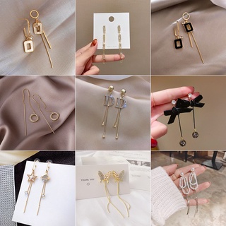 Bông tai mạ bạc 925 dáng dài đính ngọc trai thời trang