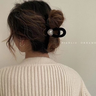 Kẹp Tóc Nhung Đen Đính Ngọc Trai Thời Trang Thu Đông Cho Nữ