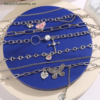 [beautifulhome] Ins net red Vòng cổ Hai Lớp Chuỗi Ngọc Trai Mặt Thánh Giá Và Bướm Trái Tim Nhỏ [Người Đẹp]