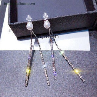 [beautifulhome] Bông Tai Kim Loại Dài Tua Rua Hình Nơ Đen Lấp Lánh Pha Lê Sáng Bóng [beauty]