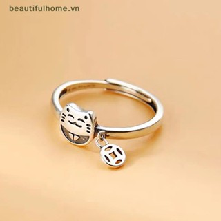 Nhẫn Bạc S925 Hình Mèo May Mắn Có Thể Điều Chỉnh Màu Sắc Dành Cho Nam Và Nữ