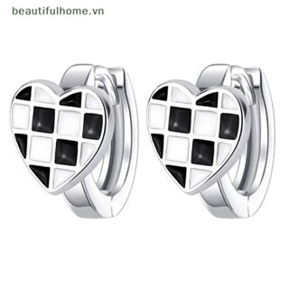 1 Đôi Bông Tai Bạc Hình Trái Tim Họa Tiết Sọc Caro Trắng Đen Sáng Tạo Thời Trang Cho Nữ