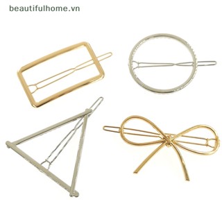 Set 2 Kẹp Tóc Kim Loại Hình Tam Giác / Tròn / Ngôi Sao Thanh Lịch Ngọt Ngào Cho Nữ