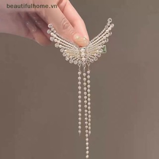 [beautifulhome] Bông Tai Dáng Dài Hình Bướm Pha Lê Tím Đính Ngọc Trai Và Kim Cương Giả Cho Nữ [beauty]